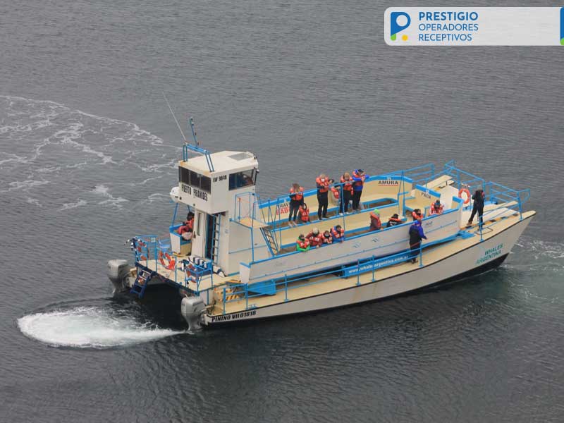 El recorrido comienza bordeando la costa en distintas direcciones, para luego dirigirse una o dos millas mar adentro, al encuentro de las ballenas francas australes.