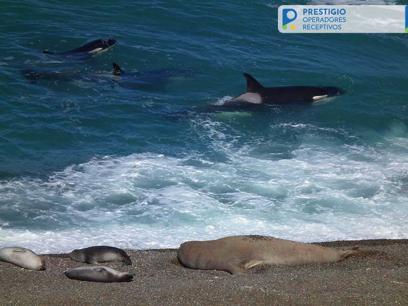 La Península Valdés es uno de los pocos lugares en el mundo donde se las puede ver en su hábitat natural. Ver de cerca una ballena con su ballenato, presenciar un salto y sentir su resoplido es un espectáculo que el pasajero difícilmente olvidará.